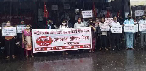 BONGAIGAON: Along with other parts of India, all trade unions and federations staged demonstration on Friday at Bongaigaon Railway station and Bongaigaon Railway Workshop against several issues like the Central Government's anti-labour policy, petrol-diesel price hike, privatization of profit-making public sectors like BSNL, Railways, oil and power distribution.