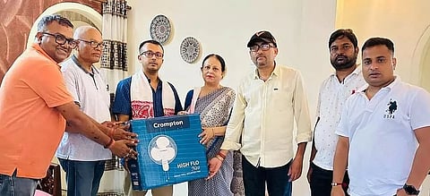 TINSUKIA: As a gesture of magnanimity, the Trideep Sarma Memorial Charitable Trust Tinsukia donated 8 wall fans to newly-renovated Tinsukia Press Club on Friday. In a solemn ceremony held at the residence of late Trideep Sarma, the members of Tinsukia Press Club headed by Kamal Talukdar and Chinmoy Sarma president and secretary of the Press Club felicitated Dipty Sarma, wife of late Trideep Sarma and his son Bibek Sarma with phulam gamosa and a note of thankfulness.