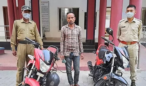 MANGALDAI: The ever prompt and alert Mangaldai Police on Monday recovered two stolen motorcycles and arrested the notorious bike lifter within five hours. The bike lifter, Pinku Bania, son of Santu Bania of Baniapara near Janaramchowka under Mangaldai Police Station, on Monday at about 11 am stole a motorcycle bearing registration number AS 13 G 7828 owned by one Bhupal Deka of village Chamuapara from SBI complex and another motor cycle bearing registration number AS 13 G 5269 owned by one Tapan Chandra Deka of village Saru Thekerabari from near the Union Bank.