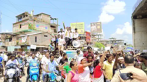 DEMOW: The people of Udaipur Gaon came to Demow Chariali through a procession on Thursday and blocked the NH-37 demanding justice for Bishal (Kopil) Borah. The protesters blocked the NH-37 in Demow Chariali on Thursday demanding justice in the alleged murder of Bishal (Kopil) Borah of Chakalapathar Gaon near Demow, and a student of Moran College whose body was recovered from Moran Tea Estate on Monday evening. It has been alleged that the youth has been murdered. As per the information received, Bishal (Kopil) Borah was a student of Moran College staying in a rented house. Two youths of 1 No Udaipur Gaon named Bishal (Kopil) Borah came to the Moran Tea Estate on Monday (August 26), and then the body of the youth was found there. The Moran Police apprehended the two youths from 1 No Udaipur Gaon on Monday night. On Thursday the protesters displayed placards in Demow Chariali and shouting slogans demanding punishment for the murderers of Bishal (Kopil) Borah.