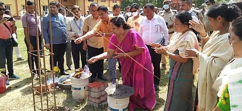 KOKRAJHAR: The Minister of State for Textiles, Petroleum, Government of India, Darshna Vikram Jardosh visited Kokrajhar on Thursday and laid the foundation stone of 'Apparel and Garment Unit' under Soil to Silk project, NERTPS at Bodoland Silk Park, Adabari, Kokrajhar in presence of Daobaisa Boro, Executive Member (EM), Sericulture, BTR; Dhananjay Basumatary, Executive Member, Handloom and Textiles, BTR and other dignitaries.