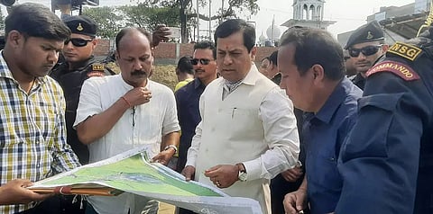 DIBRUGARH: Union Minister of Ports, Shipping & Waterways and Ayush, Sarbananda Sonowal on Thursday took stock of the erosion-hit area of Koilaghat in Dibrugarh and inspected the ongoing anti-erosion works going on there.