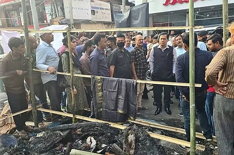 DIBRUGARH: Union Minister Sarbananda Sonowal on Saturday visited Dibrugarh and took stock of the devastating fire, which burnt down many shops in New market area of Dibrugarh town.