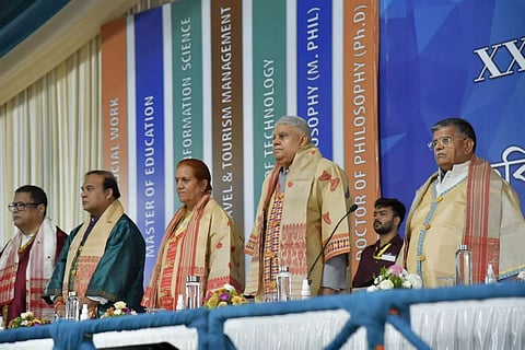 Dibrugarh University was commended by Dhankar for working towards preserving the linguistic diversity and literary traditions of the region.