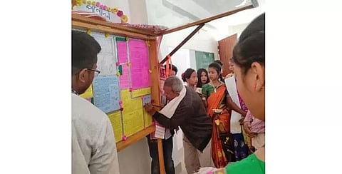 DOOMDOOMA: The first wall magazine of the newly-established Padma Nath Gohain Baruah (PNGB) Government Model College, Kakapather, 21 km away from Doomdooma, titled 'Pronodon' and brought out on the occasion Saraswati Puja celebration in the college by the Assamese department under the joint editorship of Jonmoni Moran and Rashmita Nath, was inaugurated by Arjun Baruah, president of Tinsukia Zila Xahitya Xabha (TZXX), on Tuesday. Baruah lauded the efforts of the teachers and students of the newly-established college. PNGB Model College, that came up at a plot of 22 bighas of land at Amguri, Nagaon near Kakapather with grant received under Rastriya Uccha Siksha Abhijan ( RUSA), is yet to be completed. However, it has been imparting education to the students of this interior area from December last year with partial recruitment of teachers in the wake of COVID-19 pandemic. Dr Thanuram Majinder, Principal, welcomed the guests and organized a 'Meet the guests' programme with the faculty of the college where Lalit Moran, president of Tinsukia Zila Parishad, and president, college preparation committee, Arjun Baruah, president of TZXX, Dhiren Deka, journalist and former president of Assam Science Writers' Association (ASWA) and Anju Konwar, Associate Professor, Doomdooma College were present.
