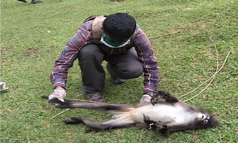 Habitat degradation led to split up of the surviving group. According to information, as a group of 3 or 4 were trying to cross the road from behind the varsity campus, one got injured after coming in contact with low lying high tension wire of the electric substation and succumbed to death. According to Biswajit Singha, a research scholar, working on this species, the low lying electric lines pose a threat to the species fighting for survival. He added to say the habitat is no longer safe for these rare primates.