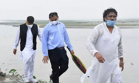 DOOMDOOMA: State Water Resources minister Pijush Hazarika visited the erosion affected No.3 Kordoiguri and Gariating under Doomdooma revenue circle on Monday where Anantanala has been causing heavy erosion over the years and no remedial measures have been taken to resist it by the government so far. Pijush Hazarika, while taking stock of the situation there, discussed the matter with the engineers and the officials of water resource department for a permanent solution to the problem. Anantanala - a water channel turned one of the tributaries of the River Brahmaputra - caused immense miseries to the people by eroding away a sizeable area of land mass in the recent past.
