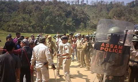 On Tuesday, he claimed, a swarm of district officials and police officers from Assam arrived and forcibly seized the land.