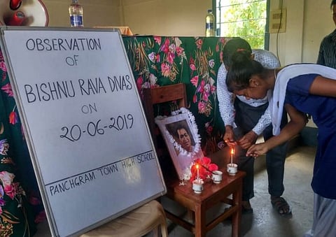 BILASIPARA: Under the aegis of Dr. B R Ambedkar Bhawan Management Committee the 50th death anniversary of Kalaguru Bishnu Prasad Rabha was observed on Thursday with a day long programme. In this connection in the morning the portrait of Bishnu Rabha was garlanded by Dayal Paul, president of the Ambedkar Bhawan Management Committee while Dr. K.L. Das, secretary of the management committee lit the ceremonial lamp followed by offering of floral tribute by Kalyan Chakraborty, secretary of Red Cross Society, Bilasipara.