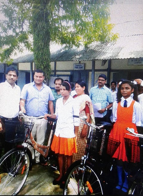 Silchar, June 27: A total number of 36 bicycles were distributed among the girl students of Class IX and X at Lakhipur Earle Higher Secondary School by its principal Anjan Kanti Nath. In addition to this, meritorious students of High School Leaving Certificate (HSLC) and Higher Secondary (HS) examinations were also felicitated. Later a meeting was conducted at the school which was presided over by Shubojit Chakraborty, school management committee president and lecturer at Nehru College, Pailapool. The occasion was graced by the presence of MLA Rajdeep Goala.
