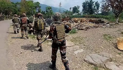 During the preliminary search, two AK series rifles, a 51mm mortar, two carbines, huge quantities of ammunition and warlike stores have been recovered from the area. Sanitization operations are currently underway and further details are awaited.