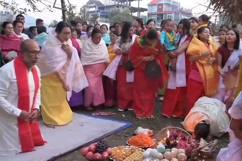 A gathering of people marked the occasion in the Mantripukhri area, where festivities kicked off with traditional rituals and music.