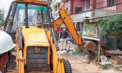 After the protestors dispersed, the officials started to dismantle the illegal structures at ICP bypass road.