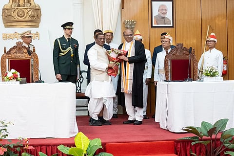 Governor Lakshman Prasad Acharya administered the oath of office to Justice Krishnakumar, who was appointed the Chief Justice of the Manipur High Court on Wednesday within 48 hours of the Supreme Court Collegium recommending his name.