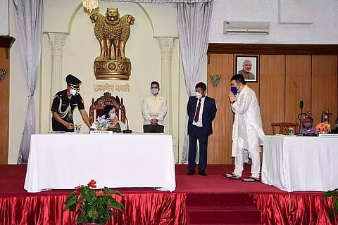 Earlier in the day, Governor Heptulla had accepted the CM's proposal on dropping three of his cabinet ministers. The proposal to drop the ministers came a day after Biren had returned with BJP's senior national Vice President Panda from New Delhi.
