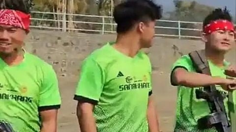 A recently surfaced video shows 10-15 people in camouflage outfits, along with others in football jerseys, carrying advanced firearms at K. Gamnomphai Village Ground. The incident happened during a football match in K. Gamnomphai Village, which falls under Saitu Sub-Division and is overseen by G. Saparmeina Police Station in Kangpokpi District.