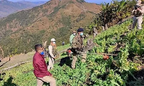A joint team of Tengnoupal district police, Narcotic Affairs of Border (Narcotic Affairs of Border), Tengnoupal Sub Divisional Officer (SDO), Personnel of Horticulture and Forest departments conducted the destruction drive of poppy plants.