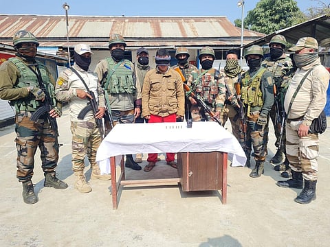 In one of the operations, the personnel arrested Sapam Paikhomba Meitei (26), an active cadre of KCP (Taibangnganba). He was arrested from Waithou-Thiyam IVR under Lilong Police Station in Manipur's Thoubal district. The troops seized one wireless handset TYT and six nos. of 9 mm live rounds from his possession.