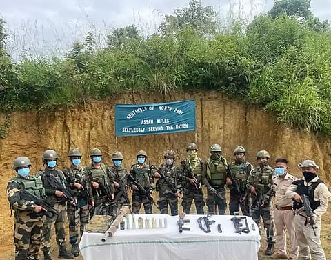 IMPHAL: In a collaborative effort between the Assam Rifles, Border Security Force (BSF), and Manipur Police, a significant cache of weapons was discovered in the remote village of Gothal-Phoulijang, Churachandpur. This operation was initiated based on precise intelligence that indicated the presence of a substantial stockpile of arms and ammunition in the area.