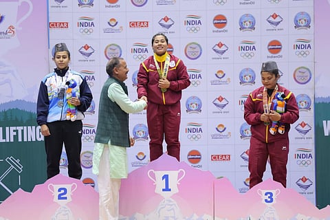 Manipur's dominance in weightlifting persisted as Bindyarani Devi set a national record in the women's 55kg category. She claimed gold with a total lift of 201kg, comprising 88 kg in snatch (a new national record) and 113 kg in clean and jerk.