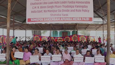 IMPHAL: Hundreds of women came out in the streets of Imphal on Saturday, February 15, demanding the reinstatement of Biren Singh as Chief Minister and the revocation of president rule from Manipur. Womenfolk from Nongpok Sanjenbam village in Imphal East staged a protest march and sit-in, calling for the formation of a government and opposing the imposition of the president's rule.