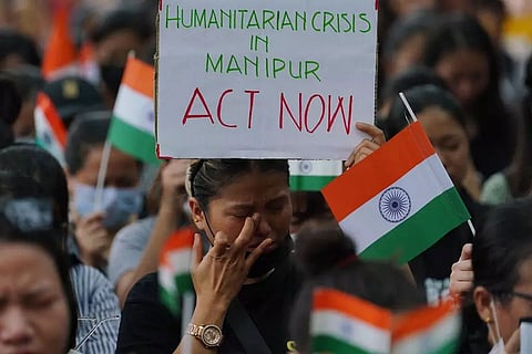 The demonstrators called for the immediate restoration of peace in Manipur as well as protection for those who live in the tribal areas there.