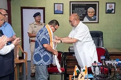 The Chief Minister, accompanied by Chief Secretary Rajesh Kumar and Director General of Police P Doungel, welcomed the 56-year-old Meitei to the mainstream.