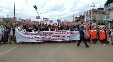 The mass rally was followed by a public meeting. The participants at the rally carried banners and chanted slogans demanding to safeguard the integrity of the state Manipur.