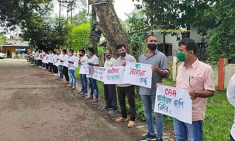 Solidarity protests were also held by different student bodies at RGU, NERIST, DNGC and other parts of the State. The protesters carefully abided by the government guidelines for the 'Green Zone' areas, AEKDSU informed.