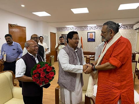 SHILLONG: Meghalaya Chief Minister Conrad K Sangma along with Deputy Chief Minister-in-charge of Animal Husbandry and Veterinary Prestone Tynsong called on Union Minister for Fisheries, Animal Husbandry, and Dairy Giriraj Singh at his office in New Delhi on Tuesday.