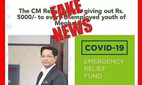 SHILLONG: A social media post with a photo of Meghalaya Chief Minister providing COVID-19 emergency relief fund is doing rounds on the internet.