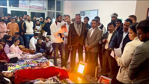 SHILLONG: A delegation of state BJP leaders, led by Minister AL Hek, visited the agitating postgraduate students of the North East Institute of Ayurveda & Homoeopathy at their campus.