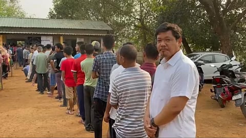 TURA: As the Lok Sabha Elections kick off, Meghalaya Chief Minister Conrad K Sangma was seen waiting in a que from 6:30 AM at the Walbakgre polling station in Tura to cast his vote.