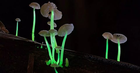 By day the tiny mushrooms, with a cap of around 3 mm to 15 mm in diameter, look ordinary. But at night they take on an almost spooky avatar with a green glow. What struck the team about this species was that only the stipes and the mycelia (thread-like strands) in the bamboo substrate glowed, the beige caps with a brownish centre did not emit light and the team says the reasons for this are still a mystery. To find out, the team plans to sequence the genome of this mushroom.