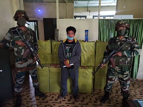 CHAMPHAI/LUNGPUK: In yet another success in its crusade against smuggling activities, the Serchhip Battalion of 23 Sector Assam Rifles -- under the aegis of Headquarters Inspector General Assam Rifles (East) -- recovered 70 cases of foreign made illegal liquor in the general area of Ngurkawn in Mizoram on August 14.