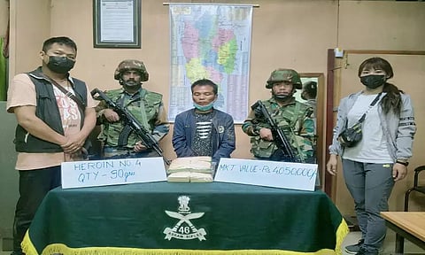 AIZAWL: A joint operation of the Aizawl Battalion of 23 Sector Assam Rifles, under the aegis of Headquarters Inspector General Assam Rifles (East), and the Excise & Narcotics Department recovered 90 grams of heroin (No-4) from the general area of Tuirial Airfield in Mizoram on March 24. The approximate market value of the seized item is Rs 40,50,000. The Excise & Narcotics Department seized the contraband item, they also detained two individual, stated a press release.