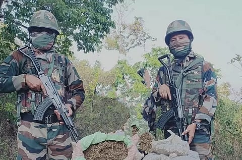 MIZORAM: The Assam Rifles recovered 5.1 kg Marijuana worth Rs. 3.06 lakh in General Area Hiangmun village, Saitual District on Thursday. The operation was carried out by a combined team of the Aizawl Battalion and Ngopa Police Station, Saitual District, based on specific information. The team recovered the consignment from a hidden dump on the outskirts of Hiangmun Village.