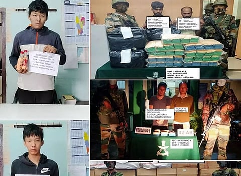 In the third incident, the Assam Rifles and the Mizoram Police, while conducting random checking of vehicles at the outskirts of Zote village on Zote-Bulfek (Myanmar) Road in Champhai district, arrested a man and recovered 73 grams (6 soap boxes) of heroin valued at Rs 80 lakh from his illegal possession. In the fourth incident, the Assam Rifles, during their routine operations on Sunday, recovered 62 cases of foreign-origin cigarettes worth Rs 80.6 lakh at Tlangsam and 73 grams of heroin at Zote in Champhai worth Rs 51.1 lakh.