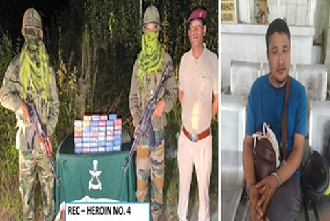 In another operation, Assam Rifles along with police personnel apprehended a Myanmarese national at Zokhawthar in Champhai district and recovered heroin valued at Rs 3.37 crore on Saturday night. The recovered drugs and the drug peddlers were handed over to the police for further legal proceedings.