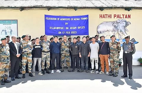MIZORAM: The Aizawl Battalion of Headquarters 23 Sector Assam Rifles, under the aegis of Headquarters Inspector General Assam Rifles (East), carried out a felicitation ceremony on Friday for the young boys of Aizawl who have finally cleared the written exam of the Agniveer Scheme under the General Duty category. It is pertinent to know that the Assam Rifles conducted pre-recruitment training for physical and written exams for aspirants from different villages in Aizawl from October 25, 2022, to January 7, 2023, at Zokhawsang. After completing preliminary documentation at the Army Recruitment Office in Aizawl, individuals will report to the Assam Regiment Center in Shillong, Meghalaya, and the Armoured Corporation Center in Ahmednagar, Maharashtra, on February 24 for basic military training, stated a press release.