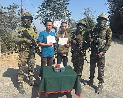 AIZAWL: Assam Rifles, along with the Police Department Dungtlang, recovered ten Hongs of Heroin No. 4 weighing 108 grams worth Rs. Seventy-Five Lakh Sixty Thousand and apprehended two individuals, identified as Laltlanhlua (34) of Zokhawthar and Hningsanghana (29) of Aizawl Electric Veng in Champhai district, Mizoram, on March 7, 2025. Police seized the vehicle, a Brezza Car (MZ-01AA-2943) at Zawlsei Y Junction, Khawbung, that was carrying the heroin. The entire consignment and both the individuals were taken into custody by the Police Department, Dungtlang, for further investigation and legal proceedings, stated a press release.