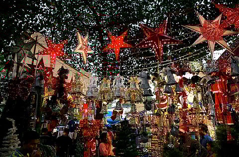 Homes, streets, government offices, and commercial buildings were adorned with decorative lights and Christmas stars, while revelers gathered in groups on Christmas Eve Tuesday night, singing carols and wishing everyone a "Merry Christmas."