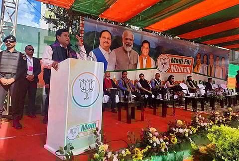 LUNGLEI: The Union Minister of Ports, Shipping, and Waterways, Ayush Sarbananda Sonowal, campaigned for the BJP in Lunglei for the upcoming assembly elections in Mizoram on Wednesday. The Union Minister Sarbananda Sonowal campaigned for the candidates R Lalbiaktluangi, contesting from Lunglei West A/C, and T Biaksailova, contesting from Lunglei South A/C.
