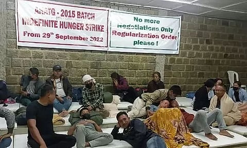 KOHIMA: About three ad hoc teachers who were part of the ongoing hunger strike at Kohima Nagaland, reportedly had to be taken to the hospital on Tuesday.