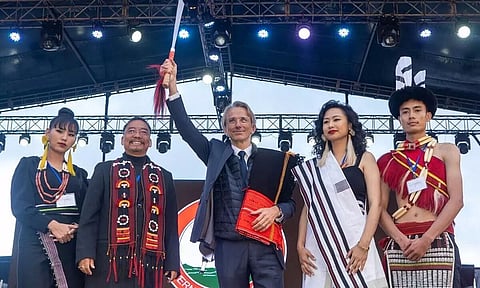 The Chief Guest of the festival Jagdeep Dhankar inaugurated the ceremony on 1st December with Jagdish Mukhi, Governor of Nagaland, host Neiphiu Rao, Chief Minister of Nagaland, festival host H. Khehovi Yeputhomi, Advisor Tourism Art and Culture, Honored guests Emmanuel Lenain, Ambassador of France to India, Alan Gemmell, His Majesty's Trade Commissioner for South Asia and British Deputy High Commissioner for Western India and Barry O' Farrell Ao, Australian High Commissioner to India. On 2nd December, the Chief Guest of the festival Ravi Bhatnagar, Director, External Affairs and Partnerships, SOA, Reckitt addressed the keynote speaker session stating that "Nagaland has pioneered its approach in addressing discrimination and erasing the stigma that marginalized people suffer. The support of the people of Nagaland to The Birds and the Bees Talk initiative focusing on inclusion, equity, awareness, consent, and protection indicates a deep understanding of sexual diversity and acceptance." The session was hosted by Mmhonlumo Kikon, Advisor of Information and Technology, Science and Technology, and New & Renewable Energy.