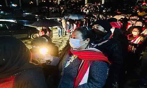 KOHIMA: Hundreds of protestors gathered at the Kohima Local Ground to observe a candlelight vigil and demand justice for the three people killed in Lamhainamdi in Peren on March 22.The vigil, organised by the Zeliangrong Students' Kohima, was attended by people from various tribes, despite the pouring rain on Wednesday night.