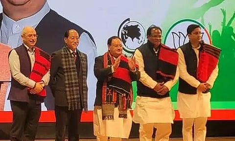 KOHIMA: Flagging off the full-fledged election campaign in the state of Nagaland for the upcoming assembly elections, the Sankalp Patra or the election manifesto for the Bharatiya Janata Party was launched today in the capital city by the National President Jagat Prakash Nadda. He also took part in an event to address the members of the Nationalist Democratic Progressive Party and Bharatiya Janata Party on Tuesday.