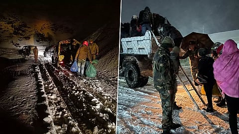 PAKYONG: The Trishakti Corps of the Indian Army rescued more than 70 tourists stranded due to inclement weather at Kupup and Gnathang in Sikkim, the Indian Army informed on Friday. They were provided with a comfortable stay, warm clothing, medical aid, and hot meals", read the tweet by Trishakti Corps. The Army termed the rescue operation "Operation Himrahat". In another rescue operation, Jammu and Kashmir Police rescued more than 300 stranded passengers and took out 60 vehicles from the Sadhna Top in Karnah, under Kupwara district, on Friday.