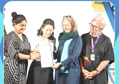 The prizes were distributed at the Marriott Resort Hotel in Panjim at the concluding event of Film Bazar. The esteemed guests, including the likes of Prithul Kumar, Joint Secretary, Broadcasting, Ministry of Information & Broadcasting and managing director, NDFC, and Vrunda Manohar Desai, joint secretary, Films, Ministry of Information & Broadcasting and managing director,NDFC, were present at the event.