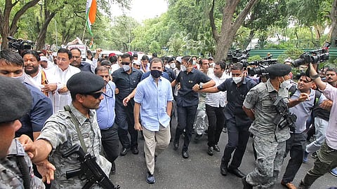 In Guwahati, the police detained Assam Pradesh Congress Committee (APCC) president Bhupen Kumar Borah and other leaders and workers when they were protesting against the summons issued by the ED to Rahul Gandhi.